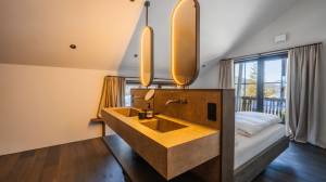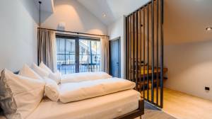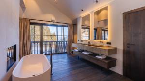 Each Lodge is designed in soft natural colours and extends over two floors. You can expect an elegant master bedroom with open bathroom and XL shower, another en suite bedroom and a private garden with its own sauna and hot tub. You can enjoy pure relaxation and breathtaking views of the surrounding mountains here.