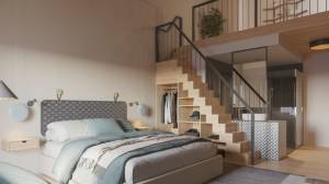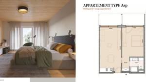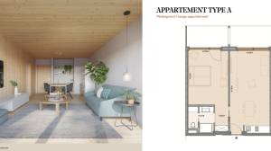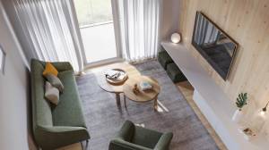 There are 80 suites in four complexes with two and three-room apartments of energy efficiency class kfW 40. Each building has 20 holiday apartments, in two different types. The two-room apartments on the ground floor have a living area of approx. 68 m2 (including loggia). On the upper and attic floors, three-room maisonettes have been built with a size of approx. 88 m2 (including loggia and gallery).