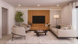 The interior of these homes has been designed with a focus on comfort and functionality. Layout options include 2 and 3-bedroom homes, with 2 or 3 bathrooms, to suit different family needs. Built-in wardrobes provide efficient storage, while pre-installation of air conditioning ensures a comfortable climate all year round. The use of porcelain tiles on the floors gives a modern and elegant look, as well as being a practical and durable option. The presence of a garage in each home offers additional comfort and security for residents.
