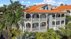 Residents of Residence Le Bleu can enjoy a beautiful communal pool with a palapa and artificial grass. Each apartment also comes with a Blue Bay beach pass for exclusive access to the beach club. There are two private parking spaces per apartment. Located on a hill in Blue Bay Heights — the most exclusive part of Blue Bay Golf & Beach Resort — the penthouse offers cooling trade winds and panoramic island views. Short-term rentals are not allowed, ensuring a peaceful residential environment. Security is professionally managed by the Blue Bay Resort.