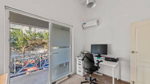 Upstairs, you’ll find a loft area ideal for a home office, along with a bedroom that has its own en-suite bathroom. On the main floor, there is a spacious master bedroom with an en-suite bathroom, and a third bedroom with its own bathroom and private balcony. All rooms have air conditioning and high-quality, low-maintenance tilt-and-turn windows and doors made in Germany. Combined with wall insulation, the AC system offers up to 30% savings on electricity for cooling.