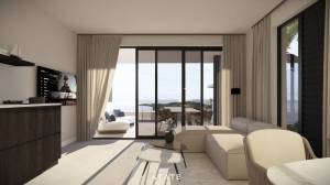 The complex is currently being built on a beautiful and elevated plot in the popular and centrally located neighborhood of Piscadera. The immediate surroundings are characterized by the presence of various hotels and restaurants such as: Marriot, Dreams, and the Corendon-Hilton hotel. The popular beaches of Pirate Bay, Marriot Beach, and Playa Parasasa are within walking distance of the complex. Finally, the central location on the island brings the great advantage that both the UNESCO heritage city center, the airport, and the beaches at Westpunt are easily accessible without traffic.The design is by the renowned architectural firm STATE Architects Curacao. STATE has successfully combined modern architecture with a Caribbean twist in the design of Parasasa Luxury Apartments. Great attention has been paid to the use of high-quality materials and luxurious finishes to ensure the complex aligns perfectly with its stunning location, breathtaking views, and the constant refreshing breeze for the ultimate Caribbean feel.This studio stands out for its compactness and versatility, offering the feeling of a luxurious and complete hotel room. The studio provides ample space for a (dining) table and lounge sofa, kitchen setup, and bathroom.The modern kitchen is equipped with all the necessary built-in appliances. The fully opening sliding door provides access to the private porch with enough space for a dining table and lounge set. From the porch, you can enjoy the beautifully landscaped tropical garden, access to the infinity pool, and the stunning view over the Caribbean Sea.The bathroom is equipped with high-quality and modern European sanitary ware. Experience the sensation of refreshing and relaxing rain showers, and the comfort of top-brand bathroom facilities selected for sustainability and a style that complements the design by STATE Architects.In the basement of the complex, there is an additional “owners’ storage closet” where personal belongings can be stored separately from the apartment.The studio is equipped with energy-efficient air conditioning systems to ensure an optimal living and sleeping climate.The complex and its surrounding grounds are being completed in accordance with the artist’s impressions, with features including:Secure parking lot with electric access gate – at least one parking space per apartment;Landscaping around the parking area;Common areas in the complex, including an elevator, storage rooms, stairwell, and amenities;Infinity pool with views over Piscadera and the Caribbean Sea, with a wooden pool deck;Fully landscaped tropical garden, including seating and lounge areas.Construction work began in February 2025, with the expected completion scheduled for the first quarter of 2026. The apartment and common areas will be delivered turnkey, fully equipped with a kitchen, bathrooms, floor and wall finishes, and other details as outlined in the available sales information. This means you can immediately start furnishing and occupy or rent out the apartment.In addition to being a fantastic studio for personal living, the location and complex offer excellent opportunities for short-term (holiday) rental to tourists or visitors to Curacao for the mid-long term. This way, you can enjoy both a beautiful place under the Curacao sun and a good return on your investment in Parasasa Luxury Apartments. Ask the agent for available return calculations.The sale of this studio proceeds through a purchase and construction agreement, where the ownership (apartment rights) will first be notarized. Then, five construction payments will follow throughout the building process until the moment of delivery.During the construction process, the developer offers the option to purchase a furniture package and voluntary collaboration with a rental organization. Both are entirely optional.House: hs2912