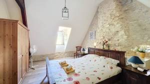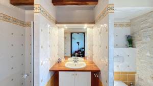 De onderste verdieping van het hoofdhuis (verbonden met het bovenste gedeelte via stenen binnentrap) heeft een entree via de cour. Hier bevindt zich de hoofdslaapkamer van 26 m² met ensuite badkamer, nog eens twee slaapkamers (17 en 17 m²) en een gedeelde badkamer. Separaat toilet. Alle kamers hebben via tuindeuren toegang tot het ruime buitenterras.