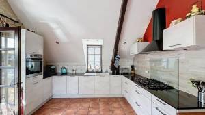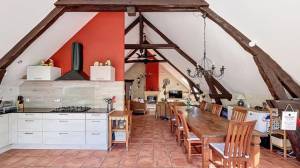 In de toren, de verbinding tussen de 2 woonhuizen, is een slaapkamer van 18 m².