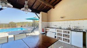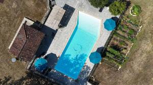 Het zwembad van 15 bij 6 meter wordt verwarmd met d.m.v. een warmtepomp. Aangrenzend een poolhouse met toilet, buitenkeuken en badkamer (douche).