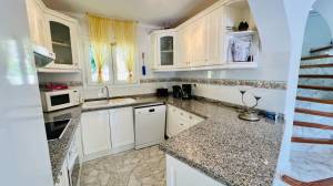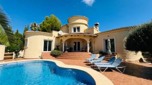 Well-Maintained Family Villa in a Peaceful Location, less than 2km from beaches, restaurants and amenities.This charming three bedroom family villa for sale in Moravit, Moraira, is tucked away in a quiet cul-de-sac but still within walking distance or short drive to amenities, restaurants, and the beautiful blue flag beach of Cala L’Andragó. The property features a private pool and attractive, well-maintained gardens. Lovingly cared for by the current owners, the villa is move-in ready and ideal as a family holiday home or a rental investment. It has proven popular with holidaymakers all year round, thanks to its proximity to Cala Baladrar, Club de Golf Ifach, Cala Advocat, and L’Andragó Beach. Private and not overlooked, it offers a peaceful retreat in a sought-after location. ACCOMMODATION: Lounge/ Dining Room, Open Plan Kitchen, Inner Hallway, Two Double Bedrooms with en-suites, Storage Cupboard. INTERNAL STAIRCASE UP TO: 3rd Bedroom/Office with en-suite and Upper Terrace Balcony. OUTSIDE: Garage, Driveway, Covered Porch, Swimming Pool, Pool Shower, Terraces, Gardens, Pump Room/Utility, Storage FULL DETAILS This lovely villa for sale in the popular area of Moravit is set on a spacious plot in a quiet cul-de-sac. The main accommodation is conveniently arranged over one level, with an additional third bedroom or office space on the upper floor. A manual gate opens onto a driveway with ample parking and access to a spacious garage, suitable for one car plus mopeds or bicycles, with extra storage available. The front garden is neatly maintained, featuring a lawn, mature shrubs, pretty plants, and trees, creating an inviting first impression. Through a pedestrian gate steps lead up to the lovely pool terrace area and to a covered porch which offers the perfect shaded spot to sit and relax. The main entrance opens directly into the cosy dining and lounge room which features built in shelving around the fireplace which has a glass door and is fan assisted so blows warm air into the room, there is also both hot and cold air conditioning and gas central heating for all year-round comfort. There is also a storage cupboard housing the new hot water boiler and provides additional storage space. A wide sweeping staircase surrounded by windows bringing in lots of light leads you to the upper level.An archway from the lounge takes you to the open-plan kitchen, fully fitted with new appliances including a fridge freezer and dishwasher, electric hob and oven, granite worktops, and wall and base units offering plenty of storage. Off the hallway is a bright spacious bedroom with double bed, fitted wardrobes and French doors opening directly onto the pool terrace. The en-suite bathroom has a full-size bath with shower, freestanding basin, bidet and wc. On the opposite side of the lounge, another archway leads to a handy storage cupboard and the second double bedroom, which also has fitted wardrobes and patio doors to the pool terrace. This bedroom features an en-suite shower room with corner shower, basin, and WC. Both bedrooms have hot and cold air conditioning and gas central heating. The Villa also has a built in safe.A large internal sweeping staircase leads up to circular turret room which is currently used as an office or it can be set up for a 3rd bedroom and has good fibre Wi-Fi access. It has an en-suite shower room and access to a private upper terrace, a peaceful retreat for enjoying your morning coffee, listening to the bird song, or reading a good book, and showcases open views over the gardens and towards the iconic Peñón de Ifach. Outside the beamed porch provides a lovely space for al fresco dining or relaxing in the shade and you can keep an eye on the children play in the swimming pool. A few steps lead down to the sunny pool terrace with ample space for loungers around the kidney-shaped swimming pool, which is beautifully lit at night. There is also a built-in BBQ, a poolside shower with hot water, and a utility area with a new washing machine inside the pool pump room. A path runs around the back of the villa with additional garden beds and mature trees, all equipped with automatic irrigation for easy maintenance. For keen gardeners, this space offers further potential to develop and enjoy. There is an underbuild for extra storage and it provides access to the water taps.The villa is in good condition, comes with a current tourist licence ( note the Basura fee will be less without a Tourist licence), and would make an excellent rental investment or a perfect family holiday home in the sun. If you are ready to begin your dream life on the Costa Blanca North, contact us to arrange a viewing.