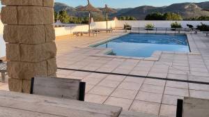 Charming and Characterful Cortijo with Rental License – BMove-in Ready and Full of Possibilities with Private Residence for Sale – AndalusiaDreaming of a life under the sun with a thriving B in the heart of Andalusia? This stunning cortijo offers 630 m² of living space and has everything you need to continue a successful hospitality business while enjoying the comfort of a private home.Located between Vélez Rubio and Chirivel, just 3 km from the A92 motorway, this property offers peace, space, and excellent accessibility.Layout AmenitiesThe property is divided into two fully functional sections:Private ResidenceUpon entering, you are welcomed into a spacious and cozy living area, featuring a charming wood-burning stove—perfect for any season. The lounge flows into a dining area, creating an open and airy feel. At the rear of the house, there is a compact yet functional kitchen and a bathroom for added convenience.Upstairs, you’ll find a large guest area—ideal as a lounge or additional bedroom. Connected to this is a second bedroom with an open walk-in closet and a spacious bathroom with a bathtub—perfect for relaxing.B SectionThere are four spacious guest rooms, each with its own private bathroom. These rooms exude warmth and tranquility, blending modern comfort with the cortijo’s authentic charm—think wooden beams, traditional shutters, and rustic touches.A welcoming breakfast and dining room offers guests a lovely space to enjoy a homemade breakfast every morning.The professionally equipped kitchen is fitted with all modern appliances, ideal for preparing breakfast and other meals for guests.Behind the dining area is a separate guest lounge—a cozy space with its own bar area, perfect for relaxing with a book, playing a game, or socializing with other guests. It’s also a wonderful spot to unwind with a drink at the end of the day.The property is heated by both natural gas and a pellet stove, ensuring a comfortable indoor climate year-round.Outdoor Area FacilitiesThe expansive 8,942 m² plot offers plenty of privacy, peace, and comfort—a true paradise for outdoor living lovers.A beautiful 5×10 meter swimming pool surrounded by sun loungers and straw parasols, with a stylish pool bar nearby. The perfect spot to cool off, relax, or enjoy a sunny drink.A fully enclosed and landscaped garden, impeccably maintained with lots of greenery—a peaceful oasis with plenty of room for relaxation or strolls on your own land.Covered terraces totaling 50 m² provide shaded spots to dine, read, or simply take in the views.Breathtaking views over the open fields and surrounding mountains—wake up every day to a postcard-worthy panorama.At night, enjoy the clear, starry sky with no light pollution—perfect for stargazing and admiring the unspoiled night sky.Ample parking for up to 10 cars, plus two garages—ideal for guests or private use.This outdoor area is a major asset to the property—perfect for hosting guests or enjoying quiet, private moments, surrounded by nature and the stunning Andalusian landscape.A Unique Domain with Space for Your VisionOn the grounds are two spacious garages—perfect for vehicle storage, gardening tools, or setting up a workshop. Thanks to their size and layout, they also offer the potential to create a hobby space or art studio.Between the pool bar and the private residence lies a generous open space, ideal for future expansions. Imagine:A private studio or guest house with complete independence and privacy.A luxurious wellness area with sauna, jacuzzi, or relaxation zone—a valuable addition for both private use and extra appeal for B guests.With the large plot and favorable layout, the expansion possibilities are truly versatile. Whether you dream of more living space, additional guest facilities, or a retreat for relaxation, this estate offers all the room and freedom to bring your ideas to life.Amenities Daily LifeChirivel is a charming village in the province of Almería, Andalusia, located on the edge of the Sierra María-Los Vélez Natural Park. It offers various local shops, including small supermarkets, bakeries, and butchers, covering your daily needs. You’ll also find several bars and restaurants serving local cuisine.For broader shopping and services, Vélez Rubio is just a 5-minute drive away. Chirivel provides a peaceful and authentic Andalusian lifestyle, with historical sites and a relaxed atmosphere.AirportsAlmería Airport: approx. 160 km (~1 hr 45 min drive)Murcia Airport: approx. 140 km (~1 hr 30 min drive)Alicante Airport: approx. 200 km (~2 hours drive)BeachesMojácar and Vera Playa are about 1.5 hours away, offering long sandy beaches and the Mediterranean Sea.In summary, Chirivel combines the tranquility of the countryside with proximity to essential amenities and recreational opportunities, making it an attractive location for both permanent residence and tourism ventures.