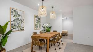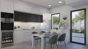 Er is een volledig ingerichte keuken met inbouwapparatuur zoals keramische kookplaat, afzuigkap, elektrische oven en geïntegreerde magnetron. De badkamers hebben een elektrische stralingsvloer als vaste glasschermen in de douches. Er is een dressingruimte in beide slaapkamersuites, met vouwdeuren, gevoerd interieur en laden. In de 3e slaapkamer bevindt zich een inbouwkast. Er is geleide airconditioning. Er is ook een pre-installatie van een oplader voor elektrische voertuigen.