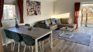 Velthorst Wood 6 – Het vrijstaande chalet Velthorst Wood 6 heeft een warm karakter met zijn kleurrijke interieur. Het is gelijkvloers en geschikt voor 6 personen. De lichte woonkamer heeft een heerlijke zithoek met televisie, een eethoek voor 6 personen en de keuken is van alle gemakken voorzien. Denk aan een vaatwasser, combimagnetron, filter koffiezetapparaat en spoelbak. In het chalet bevinden zich 3 slaapkamers, waarvan 1 met 2 eenpersoonsbedden, 1 met een tweepersoonsbed en 1 met een stapelbed. De nette badkamer heeft een douche, toilet en wastafel.