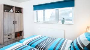 De woning beschikt over drie volwaardige slaapkamers, ideaal voor grotere gezinnen, stellen of groepen die samen op vakantie gaan. De standaard badkamer is uitgerust met modern sanitair, maar kopers kunnen optioneel kiezen voor een tweede badkamer. Ook kan er op de verdieping een extra toilet worden toegevoegd als gewenste uitbreiding.