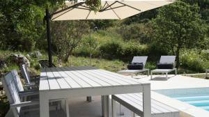 The outdoor area of the villa features landscaped gardens, a 24 sqm swimming pool with a lounge deck, as well as many spots for relaxation or entertaining guests. Parking is facilitated inside the premises, while access is through a gate.