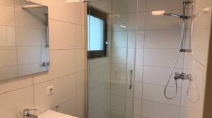 * Badezimmer im Erdgeschoss mit begehbarer Dusche, WC und Doppelwaschbecken