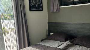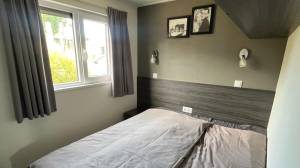 Het chalet beschikt over drie slaapkamers, waardoor er in totaal zes slaapplaatsen gecreëerd worden. De ruime hoofdslaapkamer heeft twee aan elkaar geschoven eenpersoonsbedden, elk met een nachtkastje, en een grote inbouwkast voor voldoende opbergruimte. Daarnaast beschikt deze kamer ook nog over een goed onderhouden airco. De tweede en derde slaapkamer zijn voorzien van twee eenpersoonsbedden met kasten boven het bed.