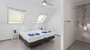 De ruime woonkamer sluit naadloos aan op een volledig uitgeruste open keuken en geeft direct toegang tot een groot, deels overdekt terras — dé plek om te genieten van zwoele avonden, een verkoelend briesje en spectaculaire zonsondergangen.