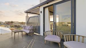 Dit prachtige penthouse bevindt zich op de bovenste verdieping en biedt een adembenemend uitzicht over de azuurblauwe oceaan. Het moderne complex kenmerkt zich door strakke architectuur, hoogwaardige afwerking en royale terrassen.