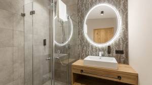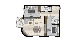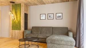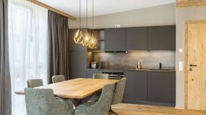 De stijlvolle woonkamer biedt genoeg ruimte om avonden samen door te brengen en na te praten over de dag vol actie tijdens je skivakantie of zomervakantie. De woonkamer biedt ook toegang tot het romantische balkon met uitzicht op de bergen van de regio. Hier vind je ook de volledig uitgeruste merkkeuken die niets te wensen overlaat.