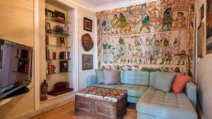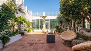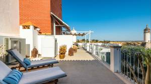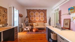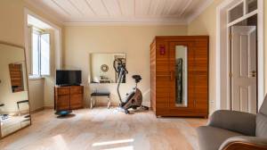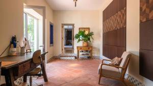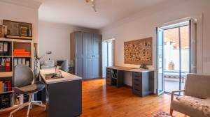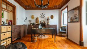 Een van de meest charmante ruimtes op deze verdieping is het kunstatelier, dat direct in verbinding staat met het terras. Het is voorzien van een volledige wand met walnoothouten kasten, Santa Catarina terracotta tegelvloeren en prachtige antieke azulejo-tegels die een vleugje lokale geschiedenis en kleur toevoegen.