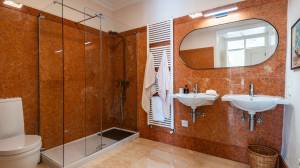 Via de originele trap met zijn prachtige smeedijzeren leuning komt u op de bovenverdieping, die veel ruimte biedt voor familie of gasten. De hoofdslaapkamer is licht en privé, met een aangrenzende badkamer met een mooie afwerking en warm natuurlijk licht. Op deze verdieping zijn nog drie slaapkamers, elk met hun eigen charme, en een grote gedeelde badkamer die volledig is betegeld met elegant Estremoz-marmer.