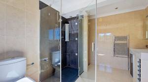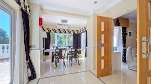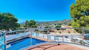 Gelegen in de populaire urbanisatie San Jaime, aan de grens tussen Moraira en Benissa, vindt u deze schitterende villa. Ten eerste is het hoekperceel waar de villa op staat voorzien van twee elektrische toegangspoorten voor auto’s en een looppoort, wat zorgt voor een gemakkelijke toegang.De villa is verdeeld over twee verdiepingen. Onder het zwembad bevindt zich een royale ruimte die kan worden verbouwd tot een buitenkeuken of fitnessruimte, afhankelijk van uw wensen. Daarnaast is er een eigen parkeerterrein dat toegankelijk is vanaf de straatzijde en een garage onder het zwembadterras, bereikbaar vanuit de andere zijde. Onder het zwembad en terras vindt u een ruime technische ruimte voor de poolinstallaties, en aan de achterzijde van de villa is er nog een kleinere technische ruimte.De villa beschikt over diverse terrassen die prachtig uitzicht bieden over het eigen terrein en de omliggende natuur. Bovendien is er niet alleen een uitnodigend zwembad met buitendouche, maar ook een mooie ruimte met opstelling van de jacuzzi.Het aangrenzende perceel is inbegrepen in de verkoop en heeft een eigen elektrische toegangspoort. Dit perceel wordt momenteel gebruikt als tuin, maar kan ook worden benut om bijvoorbeeld een casita of tennisbaan te bouwen (een bouwvergunning moet wel worden aangevraagd). De grootte van het perceel is uniek binnen de urbanisatie, omdat er normaal gesproken twee villa’s worden gebouwd op een perceel van deze omvang.De villa ligt op slechts een paar minuten lopen van winkels, restaurants, een golfbaan en de stranden. Dit biedt de perfecte combinatie van nabijheid tot de zee en tegelijkertijd voldoende privacy en rust. Bovendien zorgt de aanwezige bewaking in de urbanisatie voor een veilige omgeving.Bij binnenkomst van de villa ervaart u direct de luxe en lichte uitstraling. Op de begane grond bevinden zich de living met dubbele deuren naar het terras en het zwembad. Deze living loopt over in een eetgedeelte en een riante, goed uitgeruste keuken. Aan de achterzijde van de villa heeft u toegang tot het terras, perfect voor buiten dineren. Verder zijn er op de begane grond een apart (gasten)toilet met douche en twee slaapkamers met ensuite badkamers (één met douche en de andere met zowel douche als bad). Een van deze slaapkamers heeft toegang tot een eigen terras, en beide slaapkamers zijn voorzien van fraaie inbouwkasten met verlichting.Via een stijlvolle trap bereikt u de bovenverdieping, waar u direct extra kastruimte vindt en toegang heeft tot een smal balkon dat rondom de achterzijde en zijkant van de villa loopt. Dit balkon is toegankelijk vanuit twee slaapkamers. Hier vindt u ook een slaapkamer met inbouwkasten en ensuite badkamer met ligbad, evenals een slaapkamer met inbouwkasten en ensuite badkamer met douche. Deze slaapkamer biedt bovendien toegang tot een royaal terras.Tot slot is er nog de zeer riante master slaapkamer, die wederom is uitgerust met inbouwkasten en toegang biedt tot een groot terras. Deze master slaapkamer heeft een ensuite badkamer met zowel bad als douche. Een echte bonus is het terras met uitzicht op zee, volledig voorzien van glass curtains, waardoor het ook in koudere periodes heerlijk vertoeven is.Voor extra comfort kan de villa verwarmd worden middels de haard in de living, de airco’s (die ook koelen) en radiatoren in alle ruimtes, waaronder handdoekradiatoren in de badkamers.Wij nodigen u van harte uit om deze prachtige villa zelf te ervaren en de luxe te ontdekken die deze woning te bieden heeft!Deze woning is exclusief in de verkoop, dit betekent dat alle documenten vooraf zijn gecontroleerd en alles in orde is of in orde gebracht kan worden.