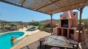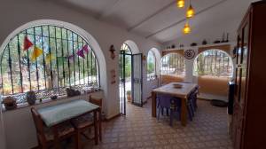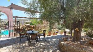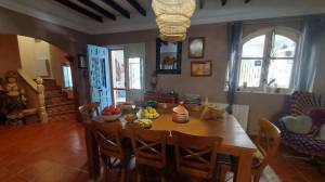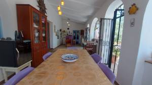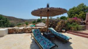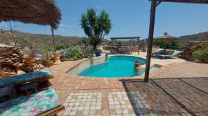 35 minuten van het strand van Mojácar – volledig off-grid en met toeristische verhuurvergunning. Tussen de bergen en het natuurpark Karst y Yesos de Sorbas ligt deze prachtige vrijstaande cortijo, met panoramisch uitzicht, ultieme rust en volop potentie voor duurzaam toerisme, spirituele retraites of comfortabel eco-leven. De woning is traditioneel gebouwd en beschikt over een serre en meerdere terrassen en diverse zitplekken onder de bomen. De locatie is volledig zelfvoorzienend met zonne-energie, een eigen waterbron, biologische tuinbouw en natuurlijke irrigatie. Een echt off-grid paradijs voor wie bewust wil leven of ondernemen. Indeling hoofdwoning Bij binnenkomst tref je een ruime serre met een kleine keuken die dienstdoet als gemeenschappelijke ontbijtruimte. Hierachter ligt de leefruimte met houtkachel en een eetgedeelte deze heeft een warme, bohemien sfeer. Centraal ligt de kleurrijke open keuken met kookeiland – praktisch ingericht en ideaal voor wie graag kookt of gasten ontvangt. Aansluitend bevindt zich de wintertuin: een lichte serre waar je, zeker in de koudere maanden, heerlijk kunt vertoeven dankzij de zoninval. Op de begane grond is ook een gastentoilet met douche aanwezig. Aan de linkerzijde van de trap ligt het privéverblijf, met een eigen woonkamer met houtkachel, slaapkamer, en en-suite badkamer. Gastenkamers – met karakter en comfort Op de eerste verdieping bevinden zich drie gastenkamers, elk met eigen badkamer (waarvan twee en-suite) er bevindt zich nog een 4e kamer die in gebruik is als linnenkamer. Deze gastenkamers hebben allemaal toegang tot een ruim terras met schitterende panoramische uitzichten. Een tweepersoonskamer met aparte bedden, kleurrijk ingericht met Afrikaanse accenten en uitzicht op de natuur. Een tweede kamer met tweepersoonsbed, elegant en klassiek ingericht. Een derde kamer met privé-opgang, licht en luchtig, met een ovaal smeedijzeren raam en uitzicht op de heuvels – mediterrane sfeer. Elke kamer biedt comfort, privacy en een warme, persoonlijke uitstraling. Buitenleven, zwembad en retraiteplekken Voor het huis ligt een schaduwrijk terras onder de bomen, ideaal voor ontbijt, yogasessies of groepsactiviteiten. Een poort leidt naar het zonneterras en zwembad van 21 m², met waterval, ligstoelen, barbecuezone en diverse zitplekken – ontworpen voor ontspanning en privacy. Een niveau lager ligt de originele era, een voormalige dorsvloer, hier staat een ruime yurt, die nu dienstdoet als ceremoniële ruimte voor meditatie, dans, of groepssessies. Verderop vind je een tipi op een uitzichtplateau, perfect voor individuele sessies of stilte. Ook aanwezig: een ecologische moestuin en op het terrein zijn diverse fruitbomen boomgaard met onder andere olijven, citroenen, vijgen en pistachenoten. Sterren kijken in Sorbas Zonder lichtvervuiling of storend geluid is de hemel hier spectaculair helder. De Melkweg is duidelijk zichtbaar met het blote oog en vallende sterren zijn hier eerder regel dan uitzondering. Er zijn ook andere bijzondere natuurverschijnselen te bewonderen, zoals een halo rond de maan of indrukwekkende dubbele regenbogen, Gewoon, kijken en genieten. Voorzieningen en extra’s Volledig off-grid: zonne-energie, eigen waterbron, natuurlijke irrigatie Garage en bergingen Goede WiFi en mobiel bereik, ook geschikt voor thuiswerken en online retraites Twee aparte toegangen – ideaal voor privégebruik én gastenontvangst Waarom dit huis? Omdat dit geen gewoon huis is, maar een plek met een ziel. Hier word je omringd door stilte, natuur en ruimte om te ademen. De combinatie van zelfvoorzienend leven, comfortabele gastenkamers en inspirerende buitenruimtes maakt deze cortijo uniek – ideaal voor wie een duurzaam leven wil leiden of gasten wil ontvangen in een bijzondere sfeer. Of je nu ’s ochtends onder de bomen ontbijt, een duik neemt in het zwembad, yoga geeft in de yurt of ’s avonds onder een sterrenhemel zonder lichtvervuiling wegdroomt – deze plek geeft je een gevoel van vrijheid en verbondenheid dat je zelden ergens anders vindt. Het is een huis dat je niet alleen bewoont, maar dat je beleeft. Ligging – Sorbas (Almería) Gelegen in de heuvels nabij het spectaculaire natuurpark Karst y Yesos de Sorbas. De omgeving biedt wandelroutes, grotten en uniek gipslandschap. Omgeving (binnen 30 tot 60 minuten) Stranden en kust: Mojácar Playa (boulevard en strandtenten), Agua Amarga (rustig vissersdorp), Las Negras (ideaal voor snorkelen), Playa de los Muertos (ruig en ongerept). Steden en dorpen: Mojácar Pueblo (wit bergdorp), Níjar (keramiek en ambacht), Vera (voorzieningen en markten), Tabernas (filmdecor en woestijn), Almería stad (haven, Alcazaba, tapas). Natuur: Karst y Yesos (ravijnen, grotten), Cabo de Gata (beschermd kustpark, baaien, flamingo’s), Desierto de Tabernas (de enige echte woestijn van Europa). Voorzieningen in de omgeving (Sorbas en directe regio) Supermarkten (Covirán, Spar), lokale winkels Restaurants en tapasbars Groeiende keuze in vegetarisch en biologisch aanbod Groentemarkt ambachtelijke winkels – o.a. in het centrum van Sorbas Banken geldautomaten – in Sorbas en Mojácar Apotheek medisch centrum – in Sorbas Dierenarts – aanwezig in Sorbas en Vera Eten drinken Traditionele restaurants tapasbars – in Sorbas, Mojácar Agua Amarga Vegetarisch/biologisch aanbod – groeit in Mojácar en Níjar Lokale bakkers, slagers kaaswinkels – dagelijks open