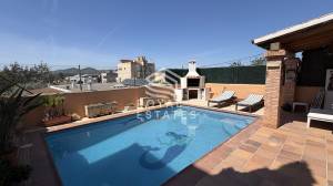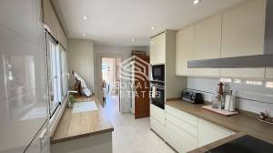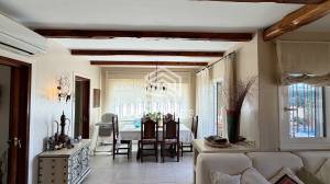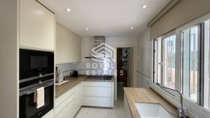 On the ground floor, the living and dining area is bright and welcoming, with direct access to the outdoor terrace. Large openings allow natural light to fill the space throughout the day, creating a warm and inviting atmosphere. The connection between indoor and outdoor living enhances everyday comfort and makes the home ideal for entertaining. The terrace includes a covered porch that provides shade during the warmer months, as well as a private swimming pool that offers a perfect place to relax and enjoy the Mediterranean climate in complete privacy. The independent kitchen has been recently renovated and is fully equipped, including a practical pantry that adds extra storage and functionality. This level also features a dedicated office space, ideal for working from home or as a quiet study area.