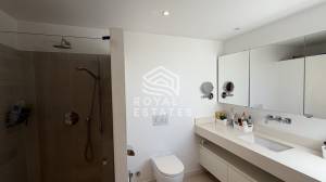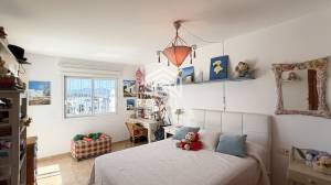 The top floor is dedicated to the master bedroom, offering a private and peaceful retreat within the home. This space features a hydromassage bathtub and enjoys views towards Dalt Vila, adding a unique Ibiza character to the property. This level also includes a laundry area and an additional flexible space that can be used as a workspace, studio, or creative room, with access to a small terrace that enhances the sense of privacy.